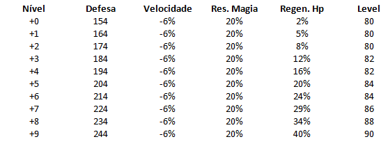 Para a sorte dos shamans, a resistência a magia não sobe mais ao refinar a roupa azul, ela ganha mais defesa e Regeneração de Hp.